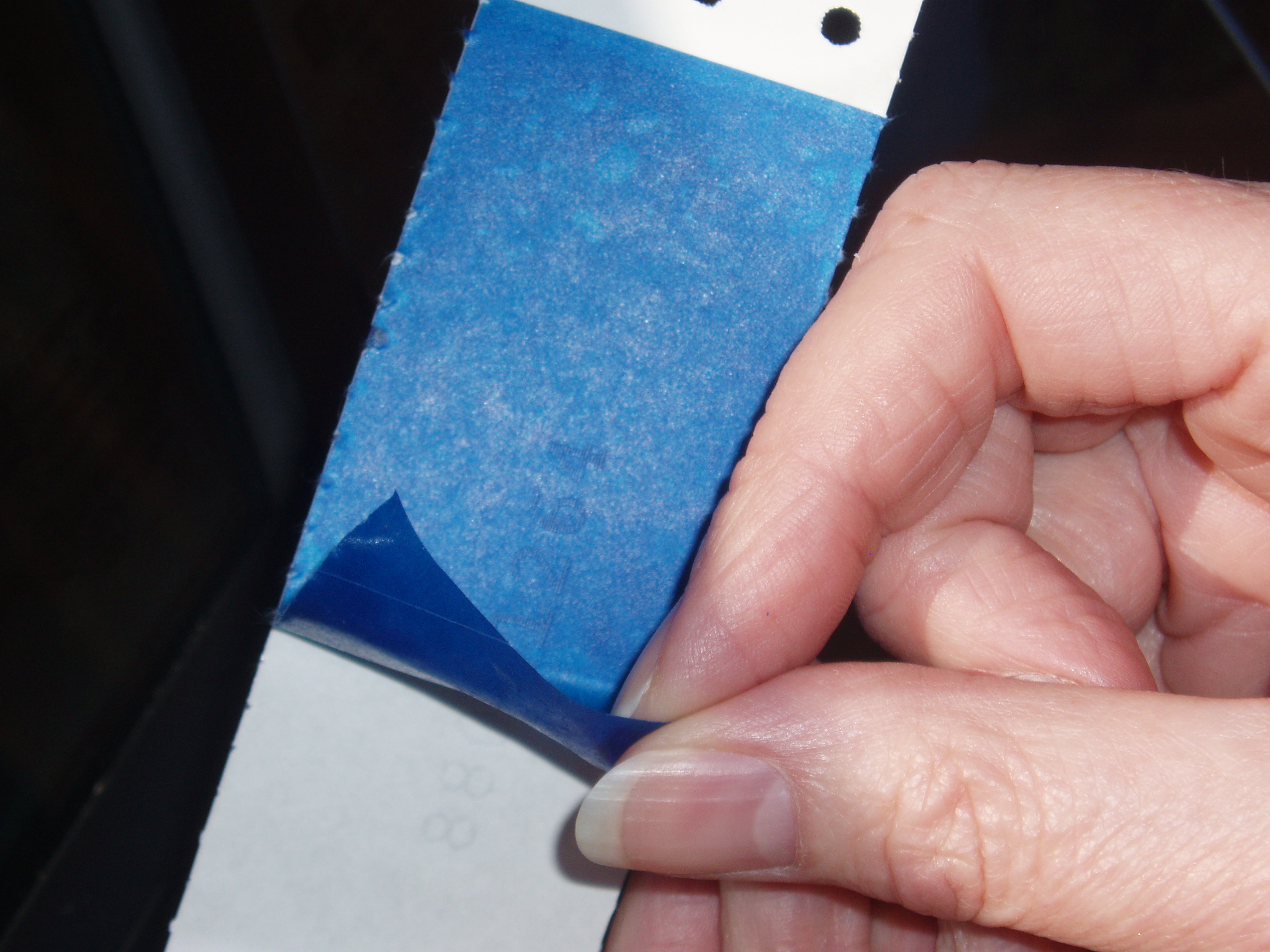 Remove the blue stencils from the white backing paper and apply to the outside of window glass in the desired locations. Using backing paper gently pat with fingertips to ensure that the stencil is in full contact with glass, paying specific attention to the area where the VIN/REG number has has been cut into stencil.